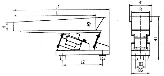 電磁線圈由單相交流電經(jīng)可控硅半波整流后供電,系統(tǒng)在電磁力作用下作受迫振動。 給料機的料槽在振動過程中不斷將物料向前方拋起,從而達(dá)到給料的目的。