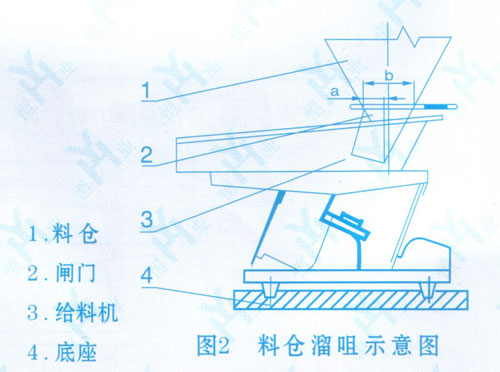 (2)料倉出口應(yīng)設(shè)計有斜溜咀,以免料柱的垂直壓力直接壓在給料機上,否則將嚴(yán)重影響給料機的效率。